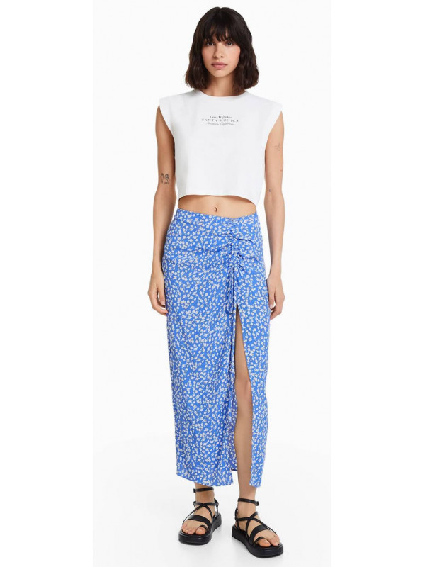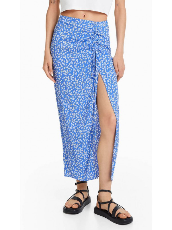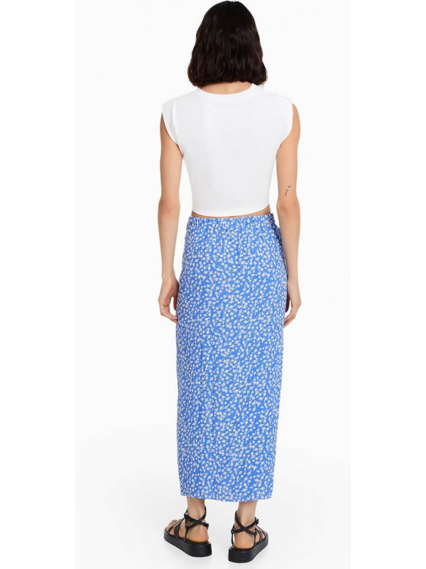 Юбка Bershka Floral Print Midi, синий