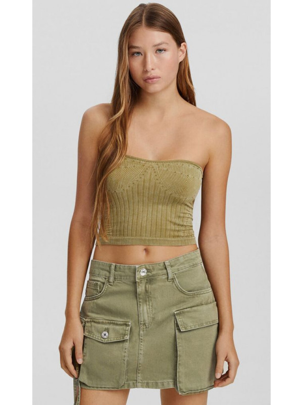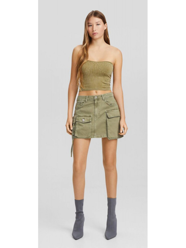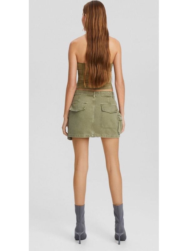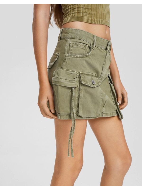 Юбка Bershka Multi-Pocket Twill Mini, хаки